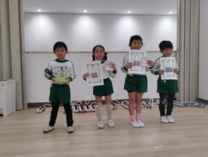 幼稚園でも表彰式を行いました。緊張していたようですが、嬉しさの方が強く笑顔でした。
