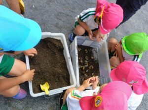 ケースに潜っていく幼虫を観察しました!これからクラスでさなぎになるのを観察していきます✨