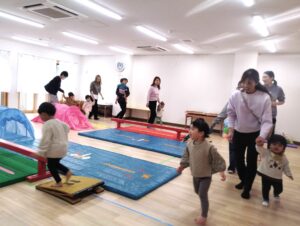 子ども達の発達をみながら講師の阿井先生と楽しく遊びましたね🍀